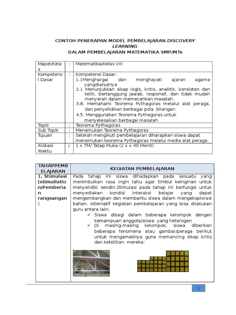 Contoh Rpp Yang Menggunakan Metode Discovery Learning : Contoh Penerapan Project Based Learning Dalam Matematika / 1.4 menggunakan teorema pythagoras untuk menyelesaikan berbagai masalah.